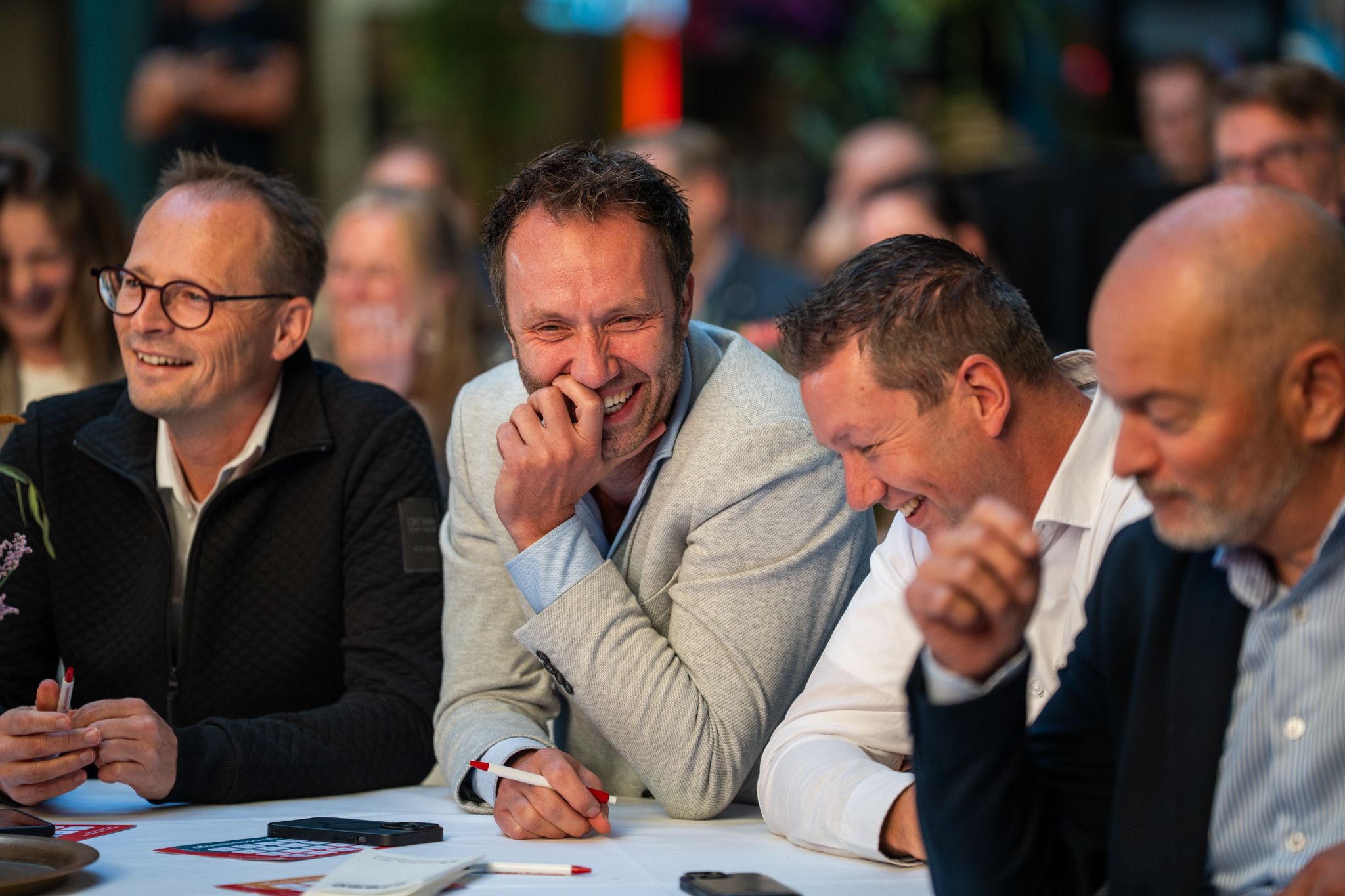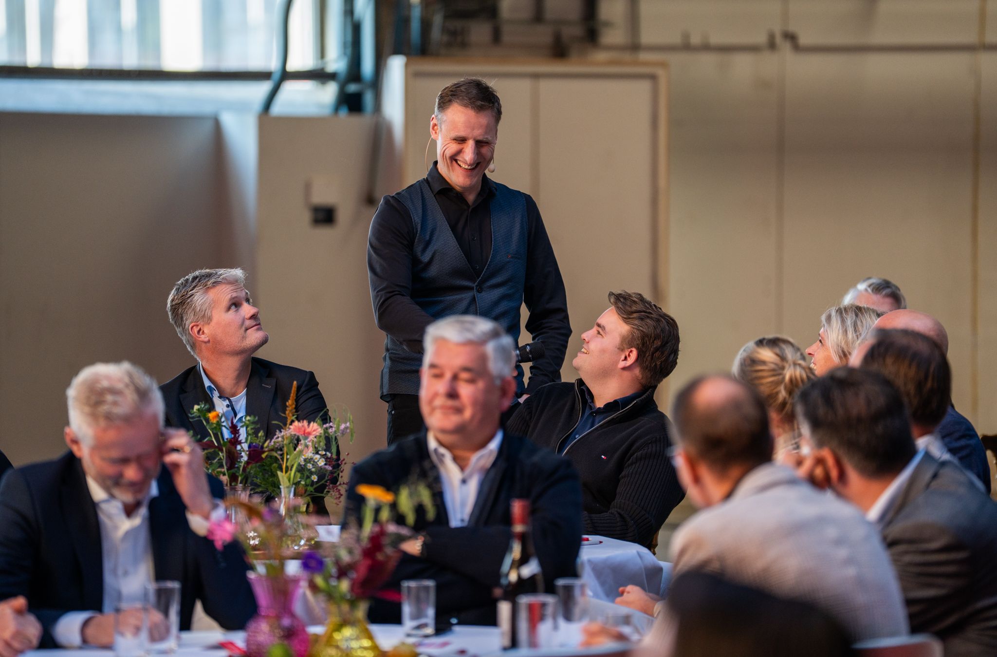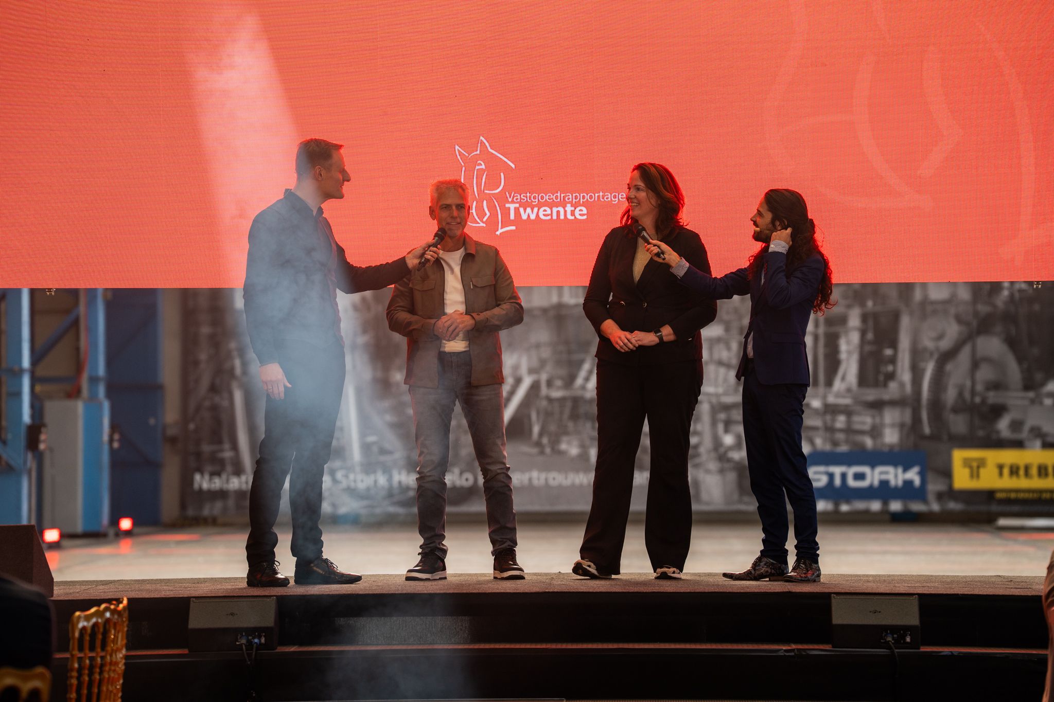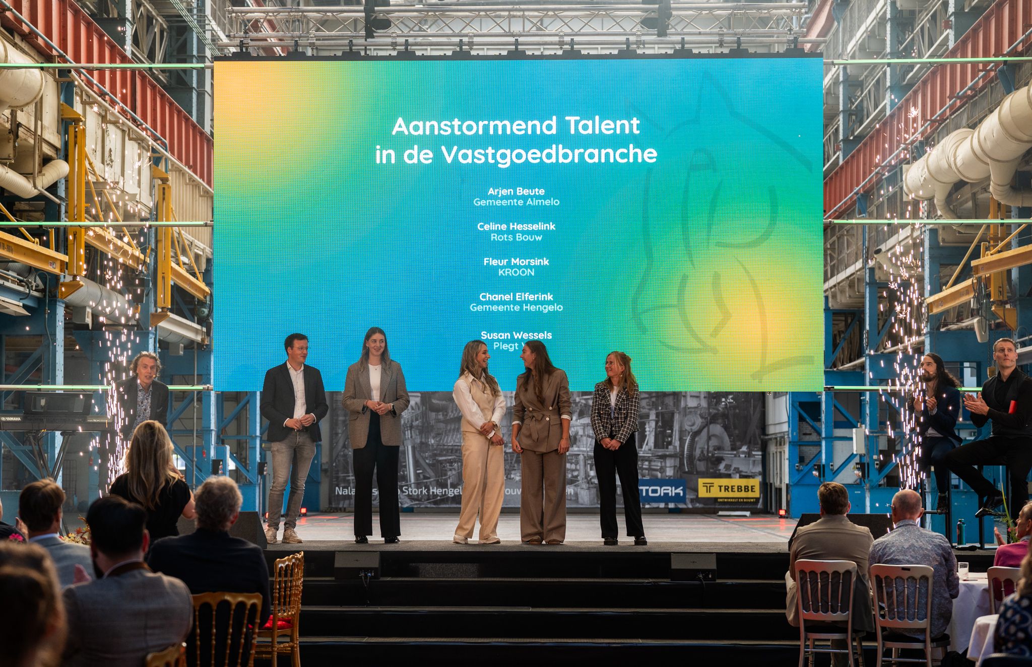 Pascal opende de middag met een inspirerende presentatie over de herontwikkeling van de Koninklijke Machinefabriek Stork. Daarna volgde een veelzijdig programma met projectpresentaties, een vastgoedbingo, mét valse bingo, en een improvisatieshow die verrassend goed aansloot bij de sfeer van de middag. Ook werd het nieuwe vastgoedtalent gepresenteerd. Arjen Beute (Gemeente Almelo), Celine Hesselink (Rots Bouw), Fleur Morsink (KROON), Chanel Elferink (Gemeente Hengelo) en Susan Wessels (Plegt-Vos) betraden het podium. Tijdens het Winterevent 2026 wordt bekendgemaakt wie van hen de titel in de wacht sleept.