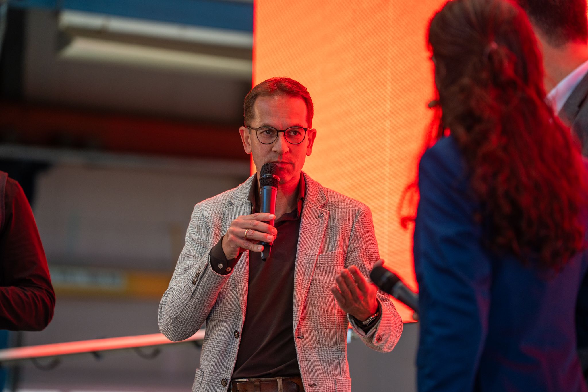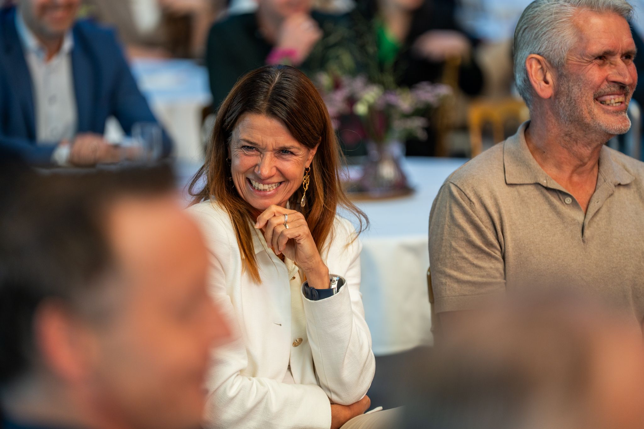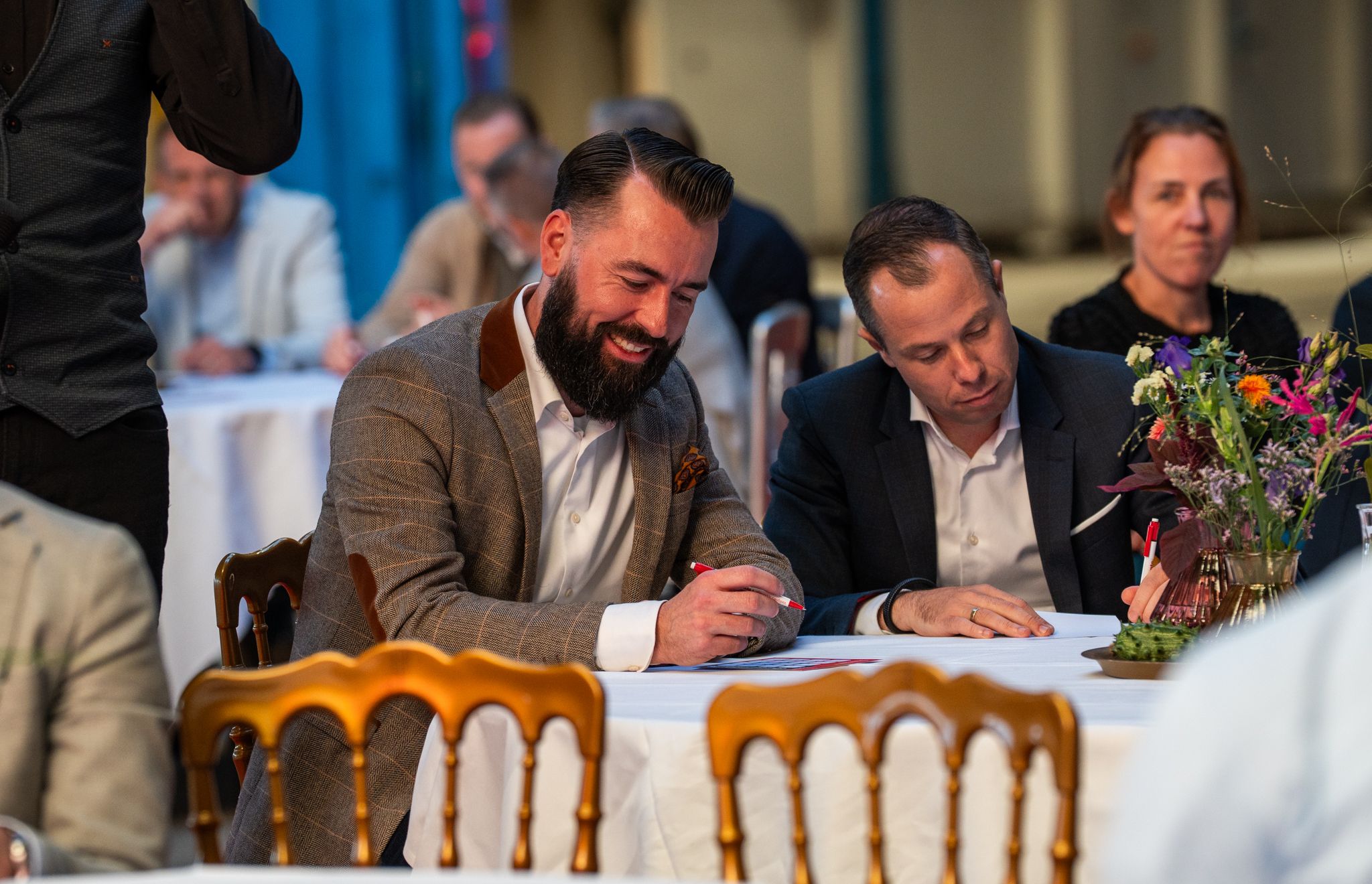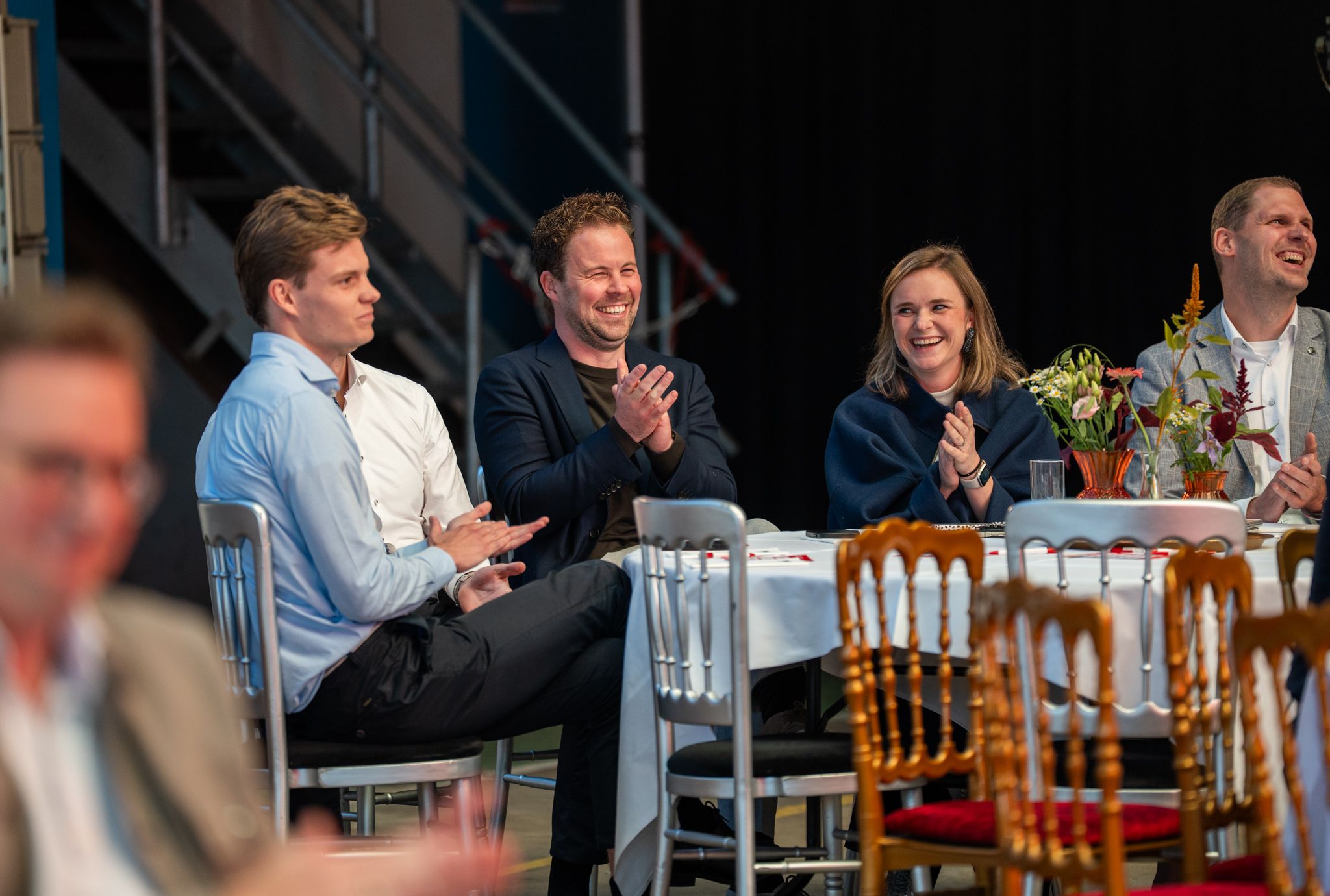 Pascal opende de middag met een inspirerende presentatie over de herontwikkeling van de Koninklijke Machinefabriek Stork. Daarna volgde een veelzijdig programma met projectpresentaties, een vastgoedbingo, mét valse bingo, en een improvisatieshow die verrassend goed aansloot bij de sfeer van de middag. Ook werd het nieuwe vastgoedtalent gepresenteerd. Arjen Beute (Gemeente Almelo), Celine Hesselink (Rots Bouw), Fleur Morsink (KROON), Chanel Elferink (Gemeente Hengelo) en Susan Wessels (Plegt-Vos) betraden het podium. Tijdens het Winterevent 2026 wordt bekendgemaakt wie van hen de titel in de wacht sleept.